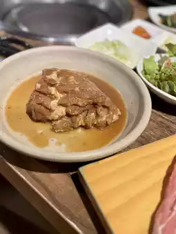 A fluffy and mild-tasting Korean-style chawanmushi. A great perk: it's free for Japanese customers. Its light texture makes it perfect for a break between yakiniku dishes.