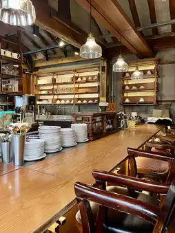 The open counter is lined with drip coffee servers and tableware, so a counter seat would be fun if you're traveling alone.