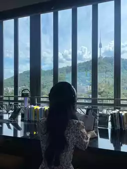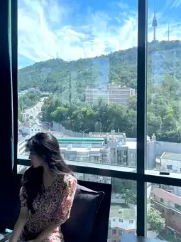 Whether you're sitting alone with a book or laptop, or chatting with friends, the comfortable seating arrangement and well-spaced tables make it an inviting space. The moment the sunset paints Namsan in hues of gold is nothing short of a 'breathtaking view' experience.