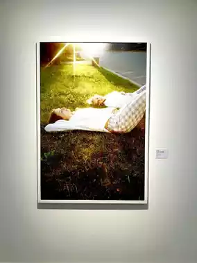 ⚘ Tip: Use the reflections of the artworks on the floor and the views beyond the windows inside the exhibition space for your photography.