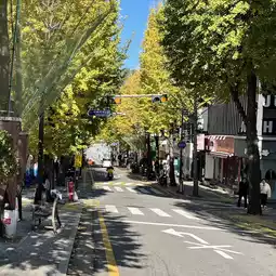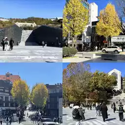 Our destination for seeing the leaves change color was Ewha Womans University, a university blessed with abundant nature. When the autumn leaves arrive, it's a popular destination for tourists, and we didn't disappoint. From the station to the university, the atmosphere is ebullient with autumn. You can also stroll around and take photos, and the surrounding area also offers a variety of shops and restaurants.