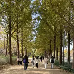 #Let'sTalkAboutTravel Seoul Forest Park is a truly beautiful spot for autumn foliage viewing. It's a large park filled with trees, especially the ginkgo trees, which turn a dazzling golden yellow. This makes it a popular spot for autumn foliage viewing. There are also various walking areas, too. It's a large and beautiful park with a wonderful atmosphere. Getting here is easy: take the subway Yellow Line to Seoul Forest Station, Exit 3. ✨