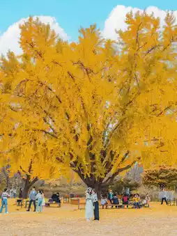 Pin the location of the hundred-year-old ginkgo tree in Seoul without having to travel far out of the province. It is next to Gyeongbokgung Palace. Take the subway to Gyeongbokgung Station 🚈 Exit 5. Walk towards Namsan Park Mall. It's only 5 minutes away. Anyone who wants to take pictures with few people should go in the morning. When you're done, rent a hanbok and wear it to walk around Gyeongbokgung Palace. 💛🍁📸 Photos taken on November 5 --------------------------------------📌 Giant ginkgo tree (Near Gyeongbokgung Palace) 💛🚈 Getting there: Take the subway to Gyeongbokgung Palace Exit 5 Station. Walk towards Namsan Park Mall for 5 minutes. #KoreaReview #KoreanAutumnFalls #KoreaTravel #Korea
