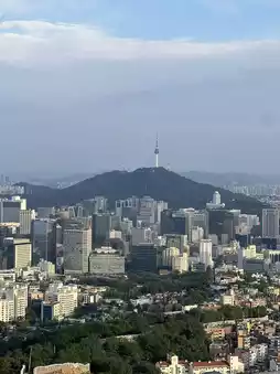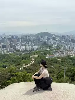 Once you reach the top, you'll be greeted with a breathtaking panoramic view of Seoul. From Namsan Tower to Gyeongbokgung Palace, the Blue House, and even the Han River, the city unfolds before your eyes like a picturesque painting. Visiting during sunset is especially magical, as the sky turns crimson and the evening glow spreads between the skyscrapers, creating an unforgettable scene.