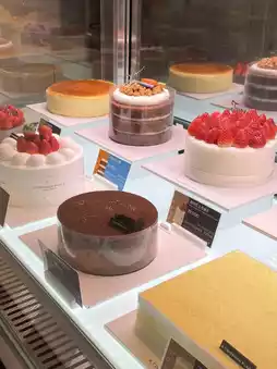 As soon as you enter, the first thing that catches your eye is the beautifully arranged cake display. 🎂🍓 There are fresh fruit cakes, cute pastel-colored macarons, and other baked goods. It's hard to choose. Each piece is exquisitely decorated, and you'll want to try everything.