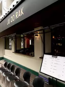 The interior is dominated by wood and dark-toned furniture, creating a cozy, subdued lighting. Window seats and quiet corners are ideal for conversation, and the music provides a soothing background. The staff was friendly, making ordering and recommending dishes a breeze. The food arrived promptly. The price range felt reasonable, and the portions were generous, making it a great value for two people to enjoy a meal and snacks. They're open late, sometimes until dawn, so I'd recommend it to anyone considering a late-night visit. Judokrak offers the perfect combination of Korean food, atmosphere, and snacks—be sure to stop by.
