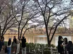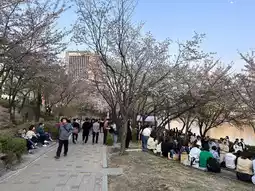 Seokchon Lake is another great spot for cherry blossom viewing! During cherry blossom season, it attracts large crowds. Even outside of this season, it's a wonderful place for a relaxing stroll. Nearby, you'll find Lotte Tower and Lotte World, where you can enjoy the scenery and indulge in some shopping after your visit!