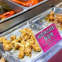 • A wide variety of street food: tteokbokki, fried chicken, hot dogs, cheese corn dogs, and even warm Korean soup for winter.