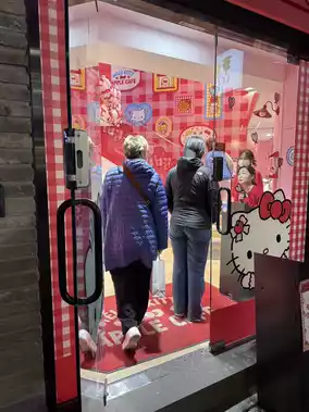 From the outside, you'll see Hello Kitty everywhere, and it's so cute!