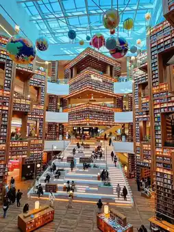 Starfield Library (스타필드 도서관) is a magnificent public library located within COEX Mall in the Gangnam district of Seoul, South Korea. It is a popular landmark for both tourists and locals, thanks to its architectural beauty and relaxing atmosphere.