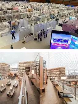 • 13-meter-high bookshelves: This is the most striking feature of the library, resembling a sky-high book wall.