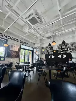The interior, with its black-based design and black cat accents, was very stylish. ✨