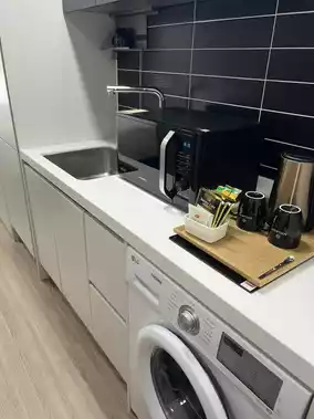 Once inside, you'll find a washing machine, a kitchen, and even a huge home-sized refrigerator, which is hard to believe is in a hotel room. It's perfect for those who request a foot massage at the hotel or for long-term stays. βοΈ