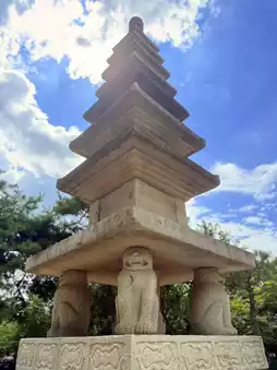 What's most unique is this statue of Guanyin, created by Catholic artist Choi Jong-tae. Unlike any other existing Guanyin statues, it instead has a Marian-like quality. Perhaps it symbolizes religious tolerance.