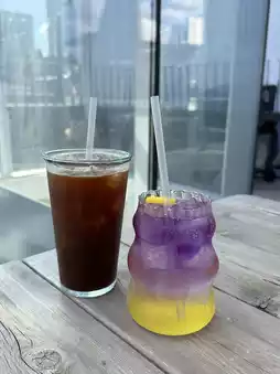 This rooftop cafe by the river offers a panoramic view, making it a great place to relax in the city. 🌇. The night view of the river from the rooftop really enhanced the atmosphere. Enjoying an iced Americano with a cool breeze was truly healing. 🧊.
