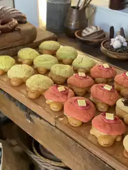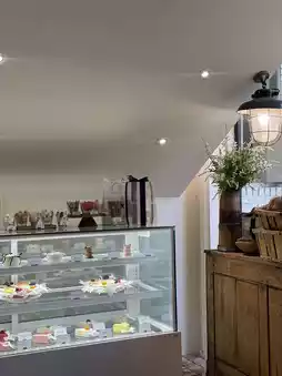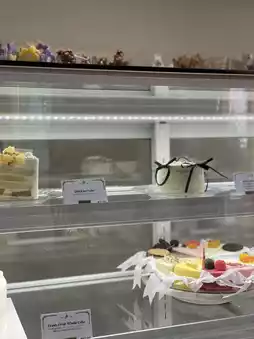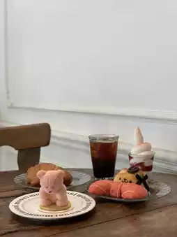 The space, with its floor-to-ceiling windows, offers a sense of natural light. The white walls, furniture, and lighting accentuate the dessert display case. The diverse menu, including cute character breads, tarts, and homemade cakes, made choosing between them a fun experience.