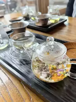 I ordered black tea with flowers and a Korean steamed bun-like pastry! ๐