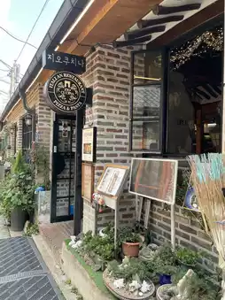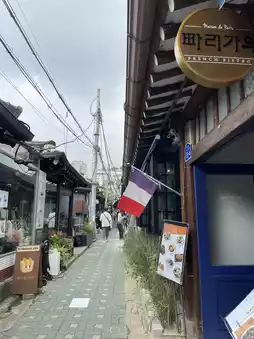 Amidst the Hanok alley, the French flag and red brick exterior are the highlights!