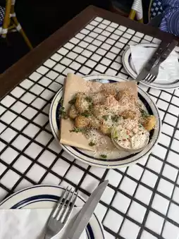 The interior, decorated in white tones and wood, created a warm and clean atmosphere. The brunch menu was quite diverse, making it perfect for sharing with friends.