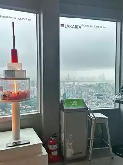 Once you enter, you'll pass an area filled with written names of cities around the world, including one that says 'Jakarta'! 😍🇮🇩 There's also a sign that shows how far the city is from Namsan Tower.