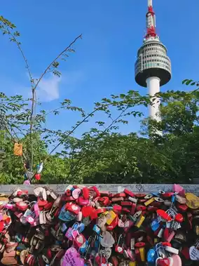Perched atop Namsan Mountain, Seoul Tower gives you a breathtaking 360° view of the city! 🌆✨