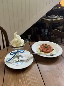 The yogurt with the ribbon on it is actually ice cream. 🍨