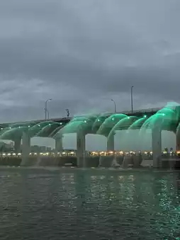 Banpo Hangang Park is famous for its fountain shows! It's a great place to eat Hangang Ramen, enjoy the Han River views, and take a walk on a nice day!