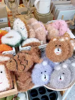 The susemi (Korean scrubbing brushes) in particular come in cute designs, like bear faces and taiyaki, making them perfect souvenirs.