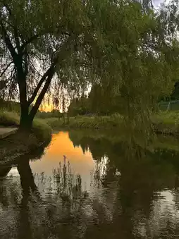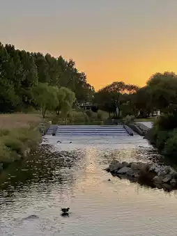 • Waterside Deck & Small Bridge: Golden highlights as the sunset reflects off the water.