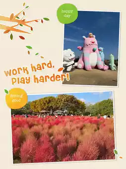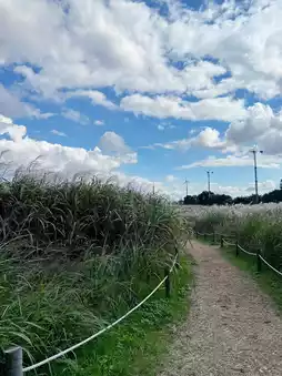 Sky Park, brimming with the hues of autumn, was truly a place where one could fully immerse in the essence of the season. Walking along the hill, the silver waves of reeds and pampas grass shimmered as they swayed in the breeze, while the crimson-tinted Kochia bushes added vibrant splashes of color in between. 🌿