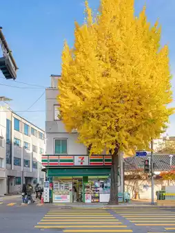 The ginkgo trees in front of the luxury store in early November are super stylish, making your photos look very high-end.