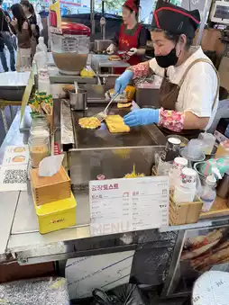 Located at the entrance of Guangzang Market, the queue is long but the queue is fast, freshly fried and sold, very crispy! Wrapped in cinnamon powder, do not Like cinnamon to note, 1000 won a piece! One of the cheapest snacks in Seoul, I will miss it when I return to Hong Kong