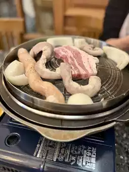 The juicy samgyeopsal and beef innards are grilled on a teppanyaki grill, while the rich cheese bokkeumbap is the perfect finale. All were very satisfying.