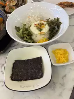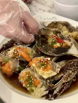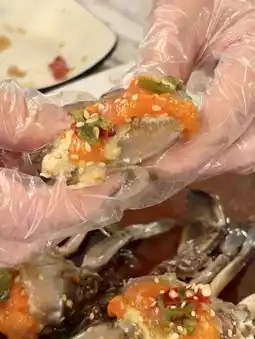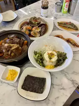 The female crab, packed with rich crab paste, melts in your mouth with its delicious flavor. The steamed beef ribs are tender, and the soy-marinated shrimp and grilled shrimp are fragrant.