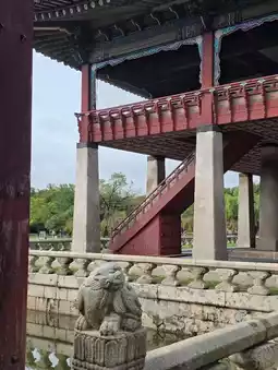 Standing majestically over a vast pond, Gyeonghoeru Pavilion is a breathtaking highlight of Gyeongbokgung Palace. The pavilion's reflection on the clear ripples of the water is as picturesque as a painting, and when the wind stirs, the gentle ripples add a dynamic touch to the serene scene. Set against the distant backdrop of Bukaksan Mountain, its harmonious structure exudes both the dignity and leisure of the Joseon royal family. Unlike other buildings in Gyeongbokgung, the open and spacious atmosphere of Gyeonghoeru is particularly striking. In spring, cherry blossoms adorn the scene; in summer, lush greenery; in autumn, vibrant foliage—all showcasing a unique charm in every season. Strolling along the water's edge, one can't help but slow down to admire the graceful harmony of nature and architecture. As a venue where kings once hosted grand banquets, Gyeonghoeru remains a space imbued with elegance and tranquility.