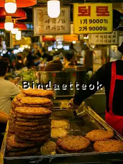 🍽️ เริ่มต้นด้วยการลิ้มรส “บินแดต็อก” แพนเค้กถั่วเขียวสูตรดั้งเดิม (Bindaetteok – Gwangjang Market)