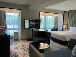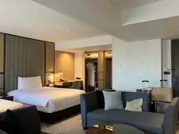 We were given an upgrade to a junior suite and our experience was truly incredible. The living area and bathroom were super spacious, and the beds were very comfortable and fluffy. Although the hotel is quite large, located alongside a convention center, offices, and a big mall, all the hustle and bustle disappeared once you entered the elevator to go to your floor. Our room faced a small rooftop courtyard garden, and despite being amid the concrete jungle, it was serene and quiet. I must say, the staff truly were the highlight of the experience—each person was kind, accommodating, and helpful. We are eagerly looking forward to returning for another stay.