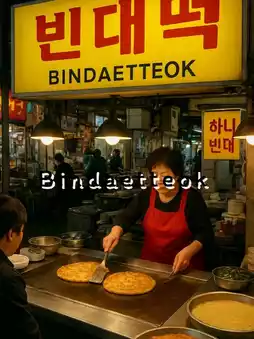 🥢 Try Bindaetteok, the market's signature crispy fried mung bean pancakes. 🥞
