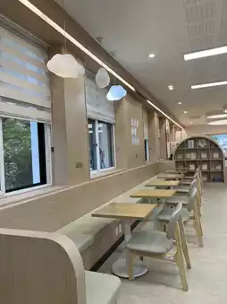 The bright lighting and warm colors of the interior created a relaxing atmosphere, and the reading nooks throughout the space were also cozy. The picture book corner and playful bookshelves were particularly impressive, and it was wonderful to see the children freely choosing books and sitting down to read. I thought it would be a great place for families to visit. ๐ซ