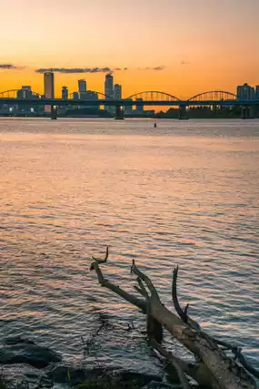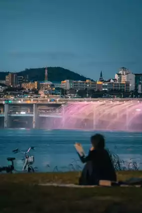 Seoul has many Han River parks, and Banpo Han River Park is the most beautiful in my opinion. There are many people strolling, and the atmosphere of a Korean drama instantly fills the air at sunset.
