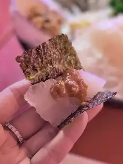 A piece of plump flatfish sashimi