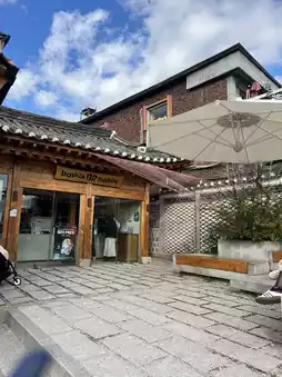 While strolling through Bukchon, I came across a Baskin-Robbins store decorated in the style of a hanok (traditional Korean house). The exterior, with its traditional tiled roof and wooden latticework, was truly impressive, and the way the familiar brand blended with the hanok was refreshing. Inside, the warm atmosphere of a hanok was a unique experience. 🌺