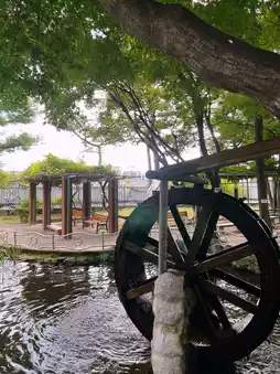 Wandering around the garden of Jeongdok Library, I was truly impressed by the tranquil and cozy atmosphere, complete with a wooden hut and a watermill. In the hut in one corner of the garden, I could take a break and feel the breeze, and the sound of the watermill was soothing. π
