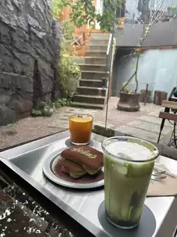 - Matcha latte and Korean dessert combo at COEX dessert cafes