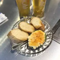 The side menu, avocado menta mayo, is served with a whole avocado topped with cod roe and mayo sauce. Mix it well and spread it on baguette slices for the perfect pairing with drinks!!!🫶🏻