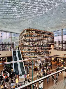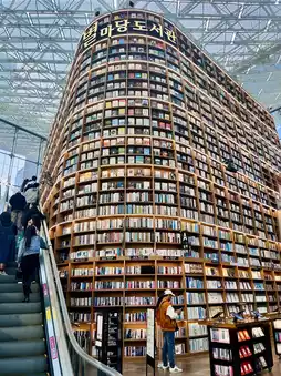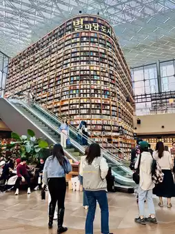 Starfield Library is a beautiful open library inside COEX Mall in Gangnam, Seoul. It’s free to visit and open every day from 10:30 AM to 10 PM.