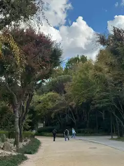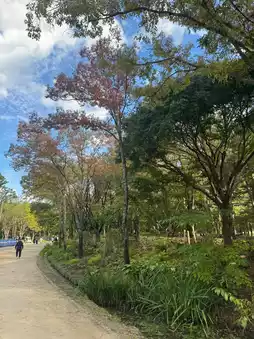 A large park with play areas for kids 🧒 and zones filled with deep red maple trees, creating a romantic atmosphere ❤️. You can stroll, take photos, or enjoy a relaxing picnic.