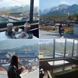 📍The rooftop offers a stunning viewpoint, offering panoramic views of the mountains and Eunpyeong Hanok Village. There are tables to sit and enjoy the view. This floor is accessible to everyone. You can either take the stairs or the elevator (the elevator only goes up to the 5th floor).