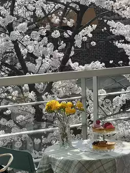 During cherry blossom season, the cafe can get quite crowded, so it's recommended to visit early or make a reservation to fully enjoy the ambiance.