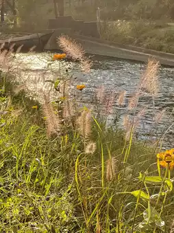 As the autumn sunset gently descends, the walking trail along Yangjaecheon is lined endlessly with blooming zinnias. The mix of yellow, orange, and pink creates a path that feels like a warm and cozy painting.